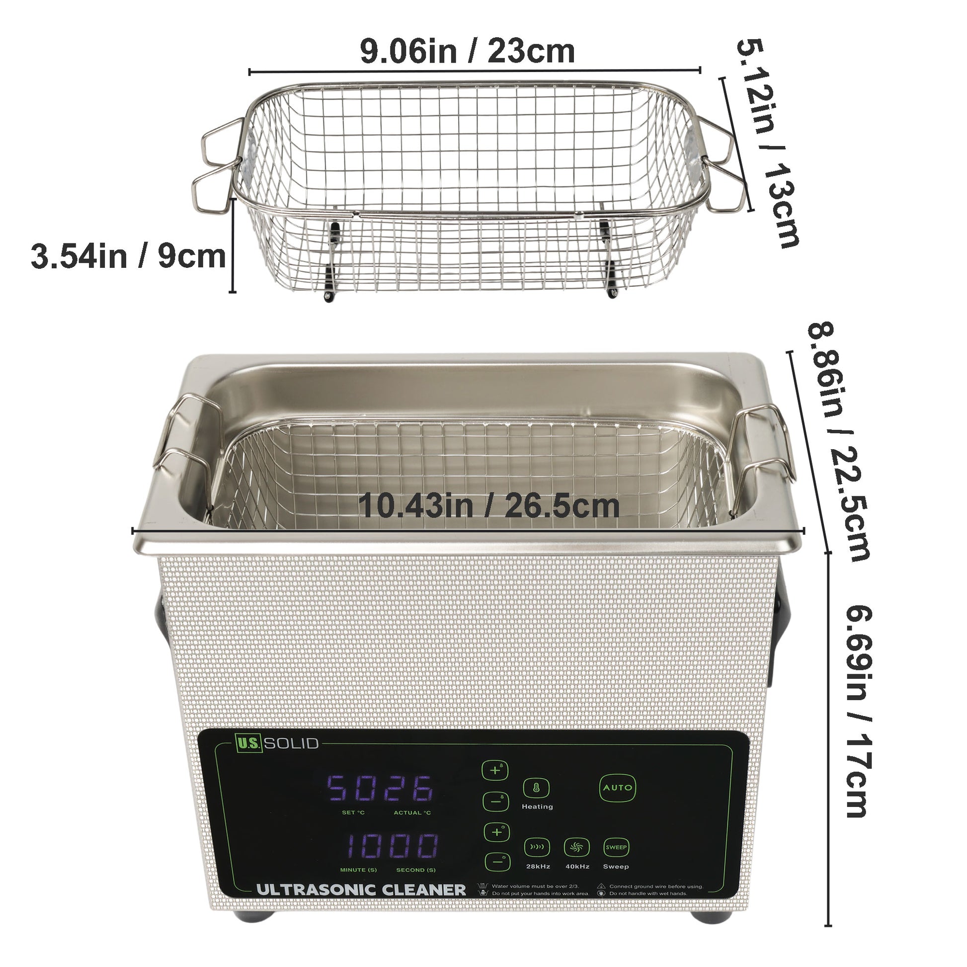 - Dual-Frequency Cleaning: Switch between 28kHz for powerful, heavy-duty cleaning and 40kHz for gentle cleaning of delicate items.