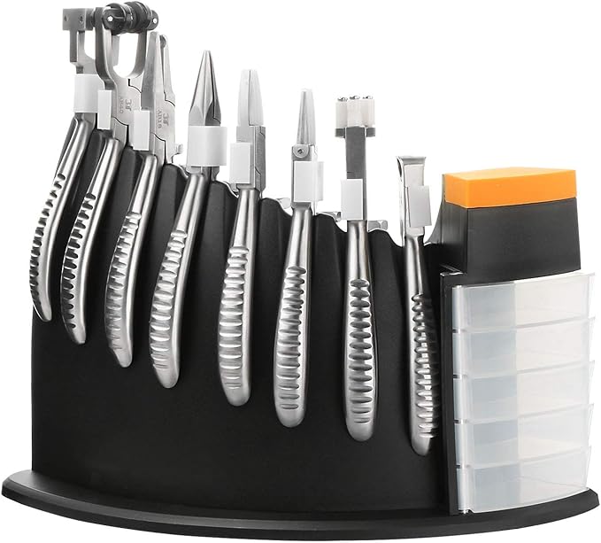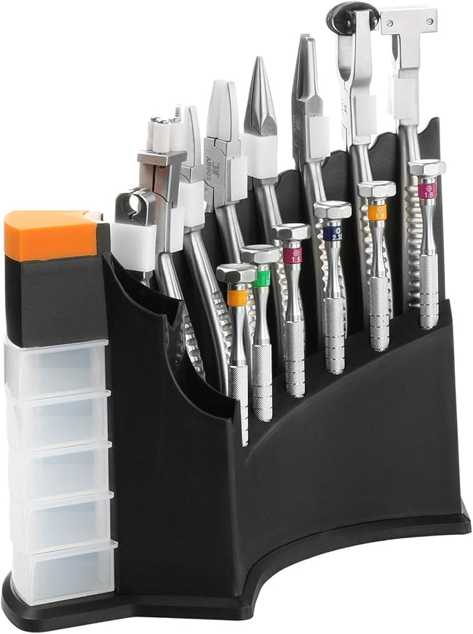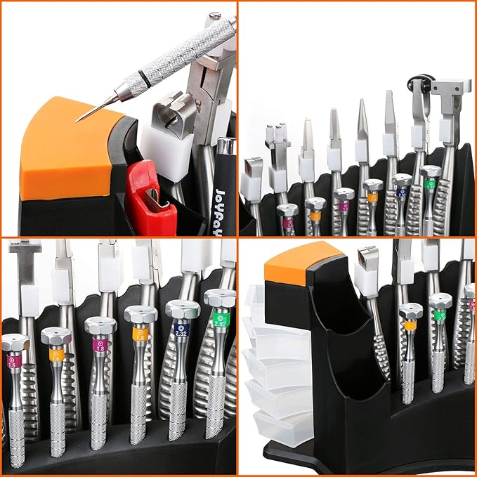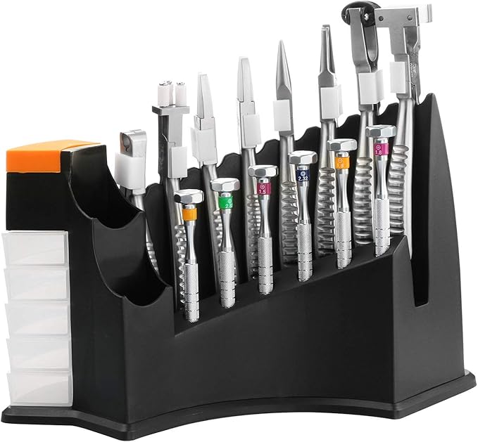 These eyeglass repair tools are essential accessories for anyone who wears glasses or deals with eyewear maintenance. This comprehensive set provides all the necessary tools to repair and adjust eyeglasses, ensuring a perfect fit and functionality. The set includes 8 pair of pliers for intricate work on any type of frame and 6 screwdrivers for slot, phillips, star and hex screws. This product ships from the United States.